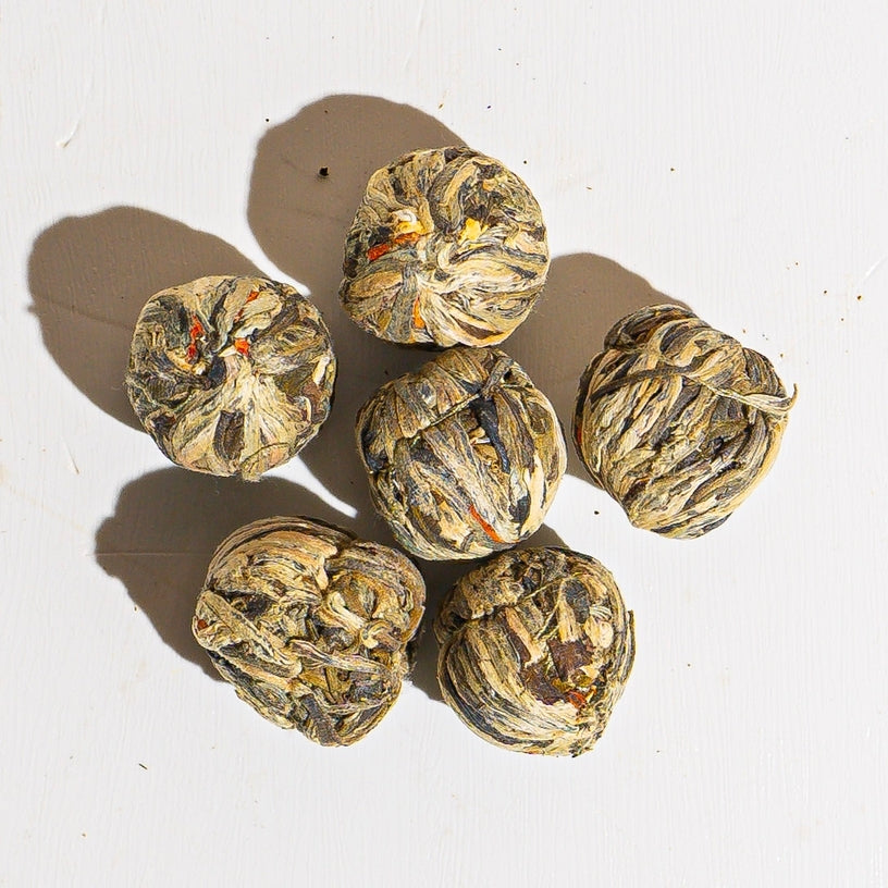 As you steep this exquisite mix, the Chrysanthemum unfolds its vibrant petals, releasing a sweet, floral aroma that soothes the senses. The Lily blossoms high and adds a subtle elegance, bringing a creamy, almost buttery note that rounds out the blend. Watch the tea unravel itself into a beautiful bouquet