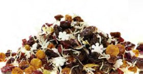 Flavored fruit tea blend with refreshing cranberry-sea buckthorn-orange-taste.
